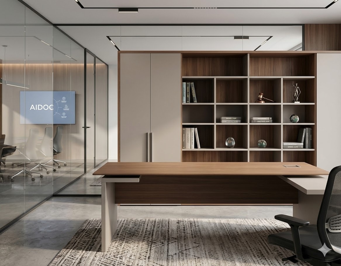 שולחן מנהל יוקרתי, פלטה פורמייקה שיש בגימור מבריק, רגליים וסינר קדמי פורמייקה בצבע שחור. ארונית שלוחה הכוללת זוג דלתות ומגירות. *המחיר תלוי במידה, צבע...
